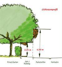 In der nebenstehenden Zeichnung können Sie das Lichtraumprofil sehen. Hecken und Bäume müssen bitte entsprechend geschnitten werden.