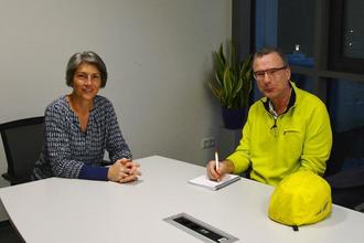 Esther Schuck, Nahmobilitätsbeauftragte der Gemeinde Uttenreuth, und Ulrich Treml, Radverkehrsbeauftragter der Gemeinde Spardorf, beim ersten Vernetzungstreffen im Verwaltungsgebäude der Verwaltungsgemeinschaft Uttenreuth.
