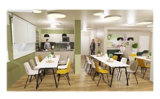 Im Erdgeschoß des Hauses Neukreut 1 entsteht für die Bewohner der Anlage und für alle Buckenhofer Bürger*innen ein „Quartierstreff“.