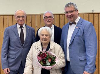 Maria Schmitt aus Ottendorf feierte in recht guter Gesundheit ihren 100. Geburtstag. Dazu gratulierten auch (von links) Landrat Wilhelm Schneider, Sohn Günter Schmitt und Bürgermeister Peter Kraus.