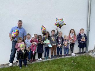 Bürgermeister Peter Kraus freute sich, alle Kinder begrüßen zu dürfen, deren Karten eingesendet worden sind. Den dritten Platz belegte Noemi Wolf aus Ottendorf (163 km) und bekam dafür einen Gutschein für das Silvana-Schwimmbad in Schweinfurt. Auf den zweiten Platz hat es Mika Alberth aus Schonungen (216km) geschafft und freute sich über einen Gutschein des Weltbio-Kinos in Schweinfurt. Der Siegerballon von Hannes Schreiner aus Knetzgau (260km) wurde mit einer Familienkarte in den Nürnberger Tiergarten belohnt. Alle anderen Kinder, deren Karten zurückgekommen sind, erhielten etwas Süßes und ein tolles Handtuch.