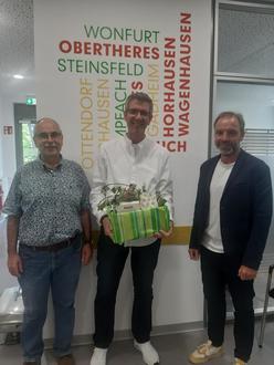 Elmar Freund konnte ein besonderes Jubiläum feiern. Seit 40 Jahren steht er im Dienst der Verwaltungsgemeinschaft Theres. Geschäftsstellenleiter Markus Hahn und Gemeinschaftsvorsitzender Bgm. Matthias Schneider gratulierten ihm zusammen mit allen Kolleginnen und Kollegen zu seinem Jubiläum.