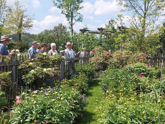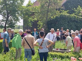 Bei endlich sonnigen Wetter erreichten wir die Höllberg Gärten im Kammlachtal. Eigentlich hätten wir mindestens einen ganzen Tag Aufenthalt in dem 1,5 ha großen Garten benötigt, damit wir das unglaubliche Wissen von Herrn Müller über die ganzen Pflanzen, Stauden und Bäume wenigstens teilweise aufnehmen können. Einige Besucher hatten viele Fragen, die alle ausführlich beantwortet wurden, während sich andere auf den Bänken sonnten und ausruhten. Da dann aber doch der Kaffeedurst sehr groß wurde, traten wir pünktlich die Weiterfahrt in den Antikhof Harzenetter in Westerheim/Günz an. Dort ließen wir es uns bei Kaffee und Kuchen und einer deftigen Brotzeit gutgehen.