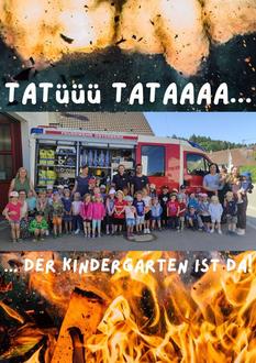Mit großem Tatüü und Trara war der Kindergarten auf Exkursion im Feuerwehrhaus. Passend zu unserer Projektwoche beantworteten uns Franzi und Nicolai alle Fragen rund um das Thema „Feuerwehr“. Am tollsten war die Sirene, im Feuerwehrauto zu sitzen und der Schlauchturm.