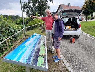 Ein Alpen-Panoramafoto hat - nach längerem Anlauf - an der südlichen Zufahrt zum Friedhof neben der Aussegnungskapelle seinen Bestimmungsort gefunden.