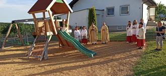 Ein großes Vergelt‘s Gott für ihre Arbeiten rund ums Käppele wurden auch an Helmut und Christa Bürzle ausgesprochen; ein Geschenkkorb und ein Gutschein wurde überreicht. Danach war es für Pater Franziskus eine besondere Freude den neuen Spielplatz einzuweihen.