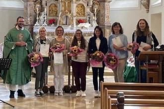Jahrelang hat das Himmelsstürmer/Kindergottesdienstteam den Kindern von Gott erzählt. Dafür sagt die Pfarrei St. Peter und Paul vielen herzlichen Dank. Im Namen der Pfarrei St. Peter und Paul Osterberg hat Pater Franziskus sich bei Bettina Fackler, Doris Käufler, Claudia Möst, Regina Straub, Barbara und Sophie Blechschmidt bedankt. Das Team hat über viele Jahre hinweg mit den Osterberger Kindern altersgerechte Gottesdienste gefeiert. Bei unzähligen Familiengottesdiensten und Himmelsstürmertreffen hat das Team mit viel Leidenschaft mit den Kindern gesungen, gebastelt, getanzt und gelacht. Dabei war allen immer wichtig, den Kindern das Evangelium nahezubringen. Zum Ausdruck der Wertschätzung wurden zum Abschied Urkunden und Blumen übergeben.