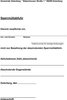 Bei der Anmeldung ist eine Verpflichtungserklärung für die Bezahlung des Sperrmülls zu unterschreiben.