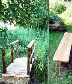 Neue Brücke und Sitzbank beim Biotop