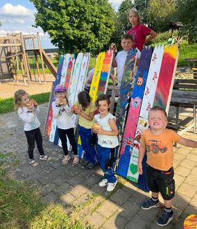 Am 22.08.2025 haben sich der Pfarrgemeinderat und die Kinder zum Ferienspaß getroffen. Wir haben Zaunbretter angemalt.