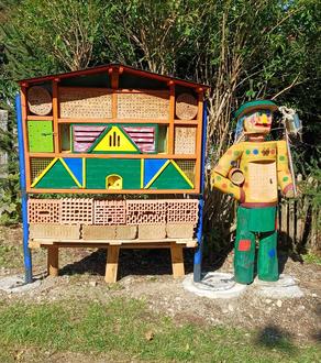 Das ursprünglich vom Gartenbauverein/Winfried Käufler gefertigte Insektenhotel bei der Schule in Osterberg war in die Jahre gekommen. Jetzt hat es ein engagierter Bürger komplett überholt und zusätzlich eine Skulptur aus Holz gefertigt, die ebenfalls verschiedenen Insekten Unterschlupf bietet.