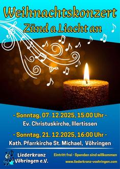 | 15.00 Uhr: | Weihnachtskonzert: Zünd a Liacht an, Christuskirche, Illertissen |