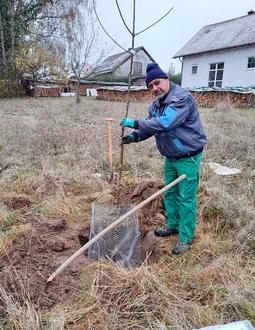 2. Vorstand Manfred Weiser beim Pflanzen an der Streuobstwiese