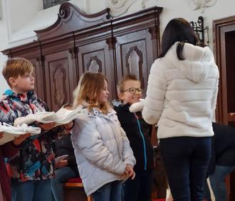 In diesem Gottesdienst ging es um das Thema „Taufe“ und Tauferinnerung/ Tauferneuerung. Die Kommunionkinder bekamen in diesem Gottesdienst ihre Alben überreicht. Davor sagten alle ihr „Ja“ zum Glauben und dem Weg mit Jesus zu gehen.