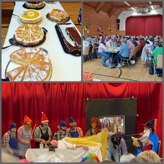 Bei Kaffee und Kuchen sorgten drei Einlagen für kurzweilige Unterhaltung. Zuerst führten die Kids aus Osterberg und Weiler als Piratinnen einen tollen Showtanz auf, der eine Zugabe notwendig machte. Danach folgte das Märchen „Schneewittchen und die sieben Zwerge“ in etwas anderer Fassung und mit musikalischer Umrahmung, welche die Besucher zum Mitsingen animierte. Zum Schluss fanden sich zwei ältere Damen namens Walli und Frieda im Wartezimmer von Dr. Sterbwohl ein und brachten die Gäste mit ihren Wehwehchen und der eingebundenen Ortspolitik herzhaft zum Lachen. Zum Abschluss eines gelungenen Nachmittags konnten sich die Besucher dann noch eine deftige Brotzeit schmecken lassen.