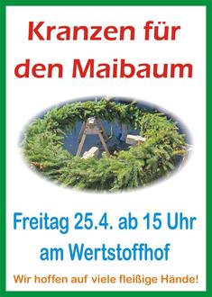 Dieses Jahr verschieben wir das Kranzen für den Maibaum auf den Freitag, da am Samstag in Osterberg die Erstkommunion gefeiert wird.