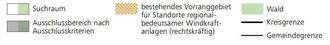 | Stand heute: | circa 0,43 % der Regionsfläche = ca. 2.300 ha = 37 Vorranggebiete |
