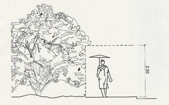So dürfen Bäume und Sträucher nicht in den für den Verkehr bestimmten Raum von Straßen, Wegen und Gehwegen hineinragen. Die gesetzlich freizuhaltenden Lichtraumprofile können den beiden Skizzen entnommen werden.