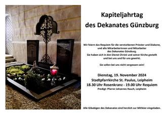 | Krumbach | 10.15 Uhr | Gedenkgottesdienst zum Volkstrauertag, anschl. Gedenkfeier am Ehrenmal Westfriedhof - Heilige Messe für Katharina und Josef Thalhofer und Sohn Josef |