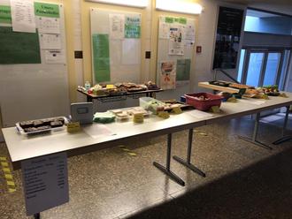 Schülerinnen und Schüler aus der Klasse 9M brachten von zu Hause selbstgebackenen Kuchen, Muffins und Çiğ Köfte mit, die in den beiden Pausen zusammen mit Brezeln verkauft wurden.