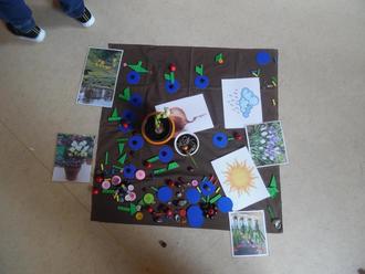 In unserer Kreismitte gestalten wir zum Abschluss vielfältige Blumen mit verschiedenen Legematerialien.