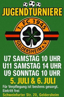 Am Samstag, den 5. Juli und Sonntag, den 6. Juli veranstaltet die Fußball-Jugendabteilung des 1. FC Geldersheim erneut den FCG-Cup auf dem Sportgelände in Geldersheim. Zuschauer sind herzlich willkommen! Kommt vorbei und feuert unsere Teams an!