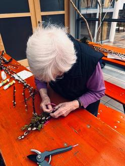 Beendet wurde die Woche mit dem 1. Kindergottesdienst in unserer Einrichtung. Hier trafen „Jung und Alt“ zum gemeinsamen feiern des Palmsonntags in unserer Einrichtung zusammen. Im Anschluss bastelten alle gemeinsam „Osterkränzchen“. Um den Sonntag abzurunden aßen wir noch Spaghetti Bolognese und für die Kinder fanden um den neuen Hasenstall herum noch kleine Osternästchen.