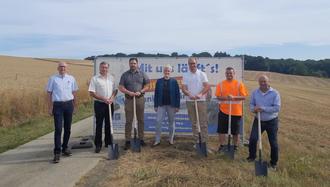 Erste vorbereitende Maßnahmen wurden in den letzten beiden Wochen durchgeführt. Mit dem offiziellen Spatenstich am 14.07.2025 trafen sich Verbands-, Geschäfts- und Betriebsleitung der RMG vor Ort, um zusammen mit der ausführenden Firma Newo-Bau aus Theres und Üchtelhausens Bürgermeister Johannes Grebner, den Beginn des Bauvorhabens zu besiegeln.