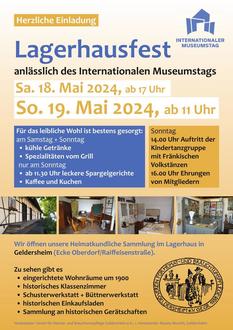 am Pfingstwochenende feiern wir in diesem Jahr Samstag-Sonntag das Lagerhausfest. Anlass ist immer der internationale Museumstag. Wir werden an diesem Wochenende unser Museum im Lagerhaus öffnen und auf der Straße vor dem Lagerhaus am Samstag ab 17.00 Uhr und am Sonntag ab 11.00 Uhr einen Festbetrieb anbieten. Am Sonntag gibt’s in der Mittagszeit wieder unsere Spargelspezialitäten.