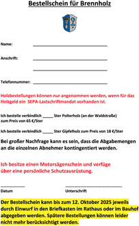Bestellschein für Brennholz