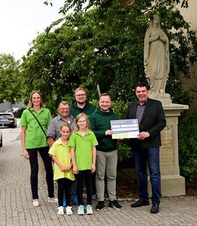 Gezielt wollte man die Sanierung dieser Marienfigur unterstützen, die unweit des Lagerhauses steht, in dem sich der Kulissen- und Kostümfundus des Vereins befindet. Auch bei der Fronleichnamsprozession wird an dem Bildstock regelmäßig Station gemacht. Erster Bürgermeister Thomas Hemmerich bedankte sich bei der Spendenübergabe für die Unterstützung und zeigte sich dankbar, dass ein weiteres religiöses Kleindenkmal für die Nachwelt erhalten bleibt.