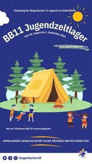 Herzliche Einladung zum Kinder- und Jugendzeltlager der Biegenbacher 11 Jugend e.V. vom 30.08.2024 – 01.09.2024 auf dem Jugendzeltplatz in Bad Kissingen.