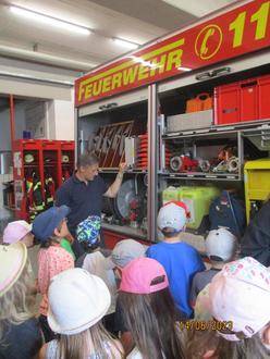 Am Donnerstag besuchten die Vorschüler des Kindergarten St. Nikolaus die Feuerwehr in Geldersheim. Sie erfuhren ganz viel über die Arbeit der Feuerwehr wie z. B. was bei einem Brand zu beachten ist, welche Ausrüstung benötigt wird und vor allem wo und wie man einen Brand melden muss.