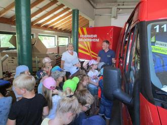 Die Kinder schauten sich die Feuerwehrautos samt Inhalt an und natürlich durften sie auch mitfahren. Selbst das Blaulicht und die Sirene wurden eingeschaltet.