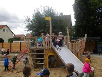 Jawohl, so war es. Am Freitag konnten die Kindergartenkinder in der Langen Gasse endlich den neugestalteten Garten in Beschlag nehmen.