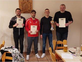 Am 06.01.2024 fanden unsere diesjährigen Vereinsmeisterschaften statt. Nach spannenden und hochklassigen Spielen konnte Stefan Schander mit einem 3:2 Sieg gegen den letztjährigen Sieger Tobias Wildanger bisher seinen 2. Titel erringen. Den 3. Platz belegten gemeinsam Andre Drenkard und Jörg Hemmerich. In der zum zweiten Mal ausgetragenen Doppelmeisterschaft konnten sich im Finale Andreas Feist/Dieter Pabst mit 3:2 gegen Andre Drenkard/Werner Enzinger durchsetzen.