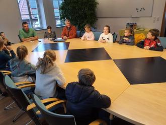 Nachdem wir im Heimat- und Sachunterricht das Thema „Gemeinde“ durchgenommen hatten, wollten wir natürlich wissen, wie es in unserem Rathaus in Geldersheim aussieht. Aus diesem Grund machten wir uns auf, die Mitarbeiterinnen und Mitarbeiter des Rathauses zu besuchen. Als wir am Rathaus ankamen, wurden wir von Frau Koch und Herrn Rustler herzlich empfangen. Herr Rustler nahm sich die Zeit, uns alle Büros zu zeigen. Auf dem Rundgang durch das Rathaus führte er uns u.a. zum Einwohnermeldeamt. Wir staunten nicht schlecht, dass wir dort alle registriert sind. So durften einige Kinder ihre Namen nennen. Als diese in den Computer eingegeben wurden, konnte man sofort das Geburtsdatum auf dem Bildschirm lesen. Im Bauamt durften wir auf einem großen Luftbild von Geldersheim unsere Wohnungen bzw. Häuser suchen und zeigen. Herr Loth erklärte uns, dass die Baupläne aller Häuser in Geldersheim in großen Aktenschränken aufgehoben werden, und dass man ein Haus nicht einfach irgendwie bauen darf, sondern sich an die Baubestimmungen halten muss. Auch das Zimmer des Bürgermeisterns durften wir besuchen.