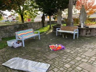 Begleitet durch das Lied „Geh mit uns, auf unserem Weg“ suchten wir vier verschiedene Orte auf, um zu erfahren, was es mit den Kerzen, dem Weihwasserschälchen, den Grabsteinen und dem Blumenschmuck auf den Gräbern auf sich hatte.