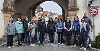 Da die meisten Mitarbeiterinnen nicht in Geldersheim wohnen, aber täglich zur Arbeit dorthin kommen, kam die Idee einer Ortsführung auf. Um mehr über die historischen Hintergründe Geldersheims zu erfahren, engagierten wir unsere ehemalige Verwaltungsangestellte und hiesige Gästeführerin Frau Zeisner.