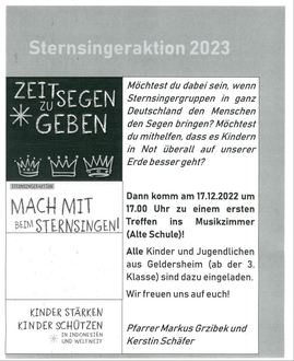 | 17:00 Uhr | ökum. Vortreffen/Infoabend Sternsinger im Musikzimmer |