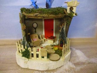 Natürlich gibt es für den Wichtel eine besondere Tür, durch die er hereinkommt und er hat aber auch ein Häuschen, in dem er wohnt.