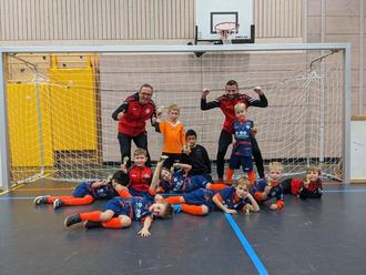 Auch unsere U7 war am vergangenen Wochenende in der Rafelder Altmainsporthalle im Einsatz. Im Auftaktspiel gegen den späteren Turniersieger TSV Gochsheim, spielerisch das stärkste Team des Turniers, ließ man sich zu sehr hinten reindrängen und verlor verdient mit 0:2. Ab dem zweiten Gruppenspiel war dann die Aufteilung deutlich besser: Rosalie verteidigte hinten resolut und baute geschickt auf, vorne war Ömer eine starke Anspielstation, der die langen Bälle unseres Torwartes Paul gut verarbeitete. So konnte die Mannschaft gegen den Gastgeber aus Grafenrheinfeld einen 0:2-Rückstand aufholen und zum 2:2 ausgleichen, ehe man durch ein mehr als unglückliches Gegentor kurz vor Schluss doch mit 2:3 den Kürzeren ziehen musste. Im abschließenden Gruppenspiel gegen die SG Sennfeld sah es nach der Hälfte des Spiels schon nach der nächsten Niederlage aus, doch dann zeigte das junge Team Moral, stellte innerhalb weniger Minuten dank Ömer und Niklas auf 2:2 und war am Ende sogar dem Siegtreffer näher als der Gegner.