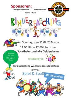 Am Faschingssonntag laden wir alle Närrinnen und Narren ab 14 Uhr ganz herzlich in die Sportheimturnhalle ein, um dort bei Musik, Tanz und Faschingsspielen ein paar schöne Stunden zu verbringen. Auch für das leibliche Wohl ist bestens gesorgt. Hier danken wir ganz besonders der Metzgerei Hemmerich, der Bäckerei Wehner und der Familie Schuler, die uns schon seit Jahren großzügig unterstützen. Ein großes Dankeschön geht zudem bereits im Voraus an das Jugendfußballteam für die Organisation sowie an die vielen Eltern, die uns beim Auf- und Abbau sowie beim Backen und Verkauf helfen. Danke für euren Einsatz!