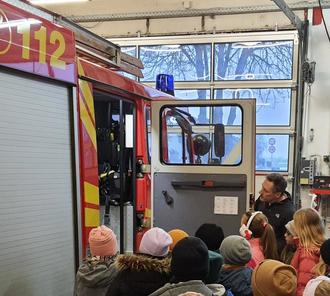 Der Höhepunkt des Besuchs war sicherlich, als Herr Weber die Kinder in die Fahrzeughalle führte und die Einsatzfahrzeuge zeigte. Die Drittklässler staunten nicht schlecht, als sie sahen, wie viele Gegenstände und Werkzeuge zu einem Einsatz mitgenommen werden. Schön war, dass die Kinder sich auch einmal in das große Feuerwehrauto reinsetzen durften.