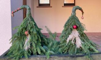 Zwei Weihnachtswichtel schmücken unseren Schulhof.
