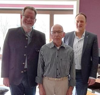 Unser Bild zeigt v.l.n.r.: Pfarrer Roger Frohmuth, Jubilar Willy Krämer, Bürgermeister Christian Kehrer