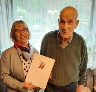 Unser Bild zeigt Stadträtin Jutta Haas mit dem Jubilar.