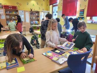 In diesem Schuljahr fand der Bücherbasar schon Ende Januar statt. Die Kinder haben in den Weihnachtsferien zu Hause ihre Bücher ausgemistet. Alle Bücher, die nicht mehr gebraucht oder gelesen werden brachten die Kinder mit, um sie gegen andere Bücher zu tauschen. Teilweise waren sogar Bücher aus dem letzten Jahr dabei, die nun weiterziehen durften. Am Ende kamen noch einmal alle zusammen und zeigten, mit wie vielen „neuen“ Büchern sie nun nach Hause gehen. Auch Kinder, die selbst keine Bücher mitgebracht haben, bekamen Bücher geschenkt, für die sich sonst niemand interessierte. Das waren richtig nette Gesten, welche zeigen, wie sehr die Kinder sich als Team verstehen, sich unterstützen, helfen und füreinander da sind.