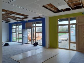 Zufrieden waren alle mit dem guten Fortschritt des Neubaus. Sämtliche Bodenbeläge sind fertiggestellt, auch die Gruppenräume mit den unterschiedlichen Farbgebungen hergerichtet, so dass es nun mit der Innenausstattung weitergehen kann. Die Möbellieferung ist bereits für die nächste Woche vorgesehen.