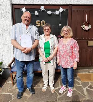 Unser Bild zeigt das Goldene Hochzeitspaar (links) mit der Ersten Stadträtin